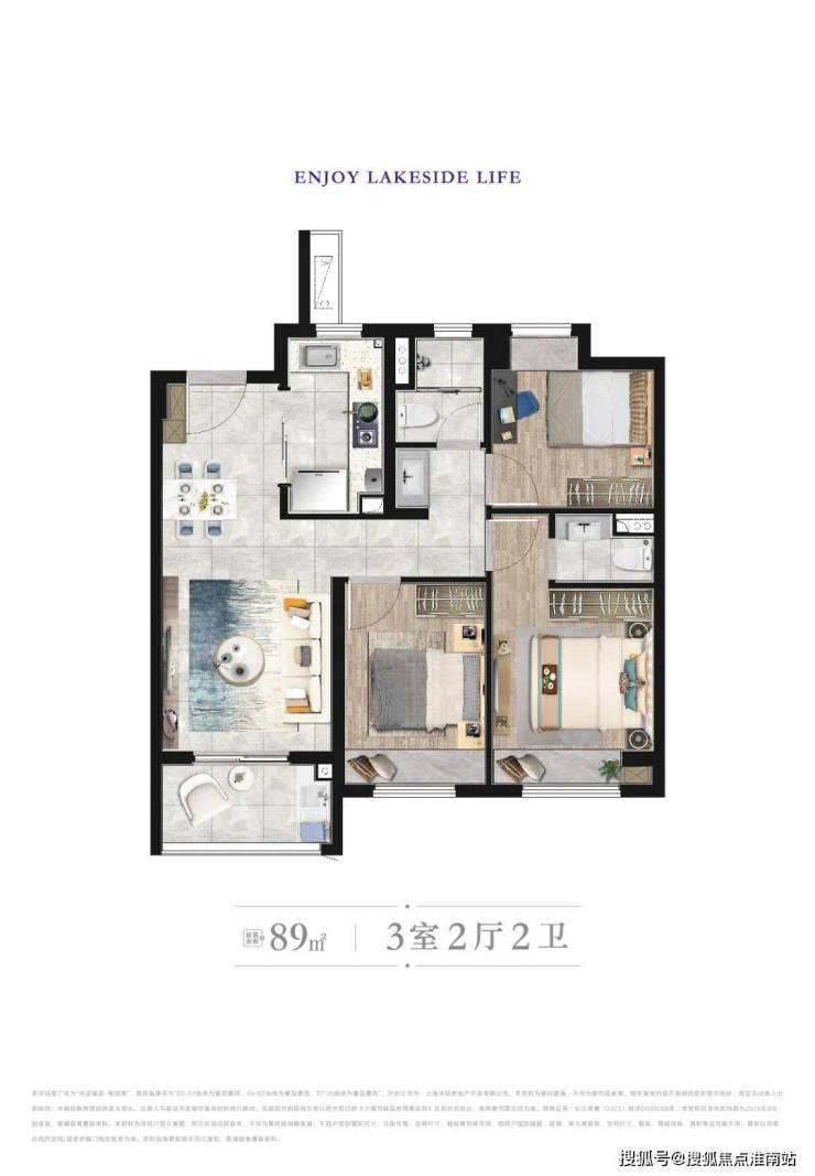 户型上,建面约89㎡做到了罕见“3房1.5卫”,能保证小家庭很长时间都不用换房。同时 三开间朝南、三卧飘窗、次卫干湿分离、主卧套房都是标配,实用性高。