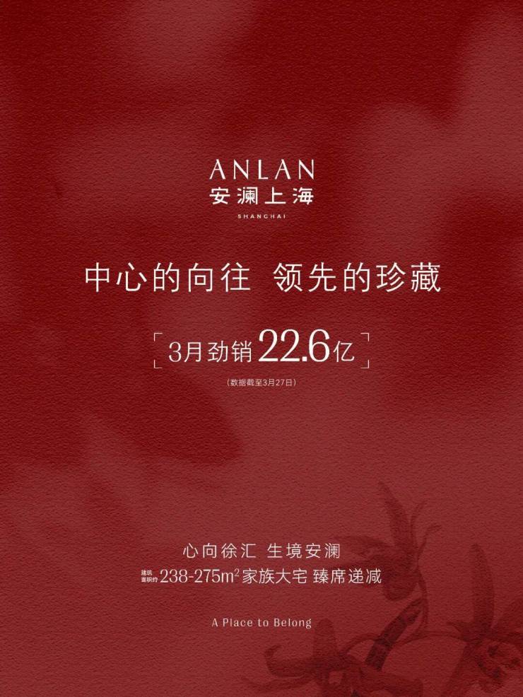 3月,安澜上海劲销22.6亿, 以断层式领先优势,成为上海顶豪市场当之无愧的风向标。