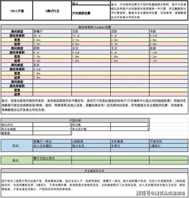 建面约103方A户型