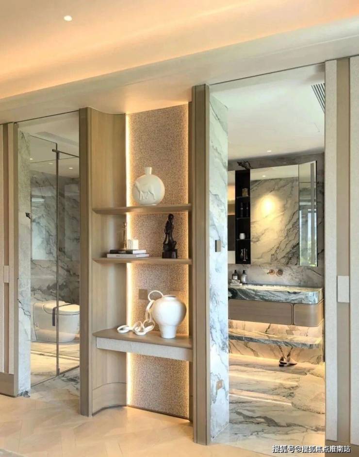 万科中興傲舍凝聚72种高端豪宅都难得一见的奢材,如皇家白奢石、绿皮革面奢石、砖纹定制铝板等等,每一处细节都透露出精致与考究。