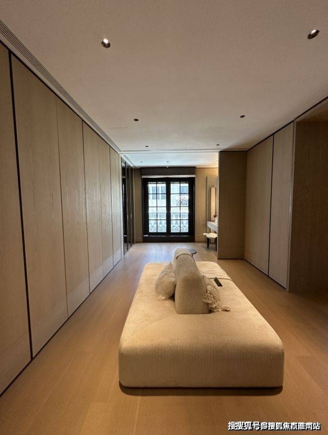 【弘安里】售楼处预约咨询热线:400-9659-259三楼整层为主卧套房,样板间设计了双开门入卧室,进入起居空间,样板间选择在这里放一些艺术装饰、设计吧台来彰显主人品味。