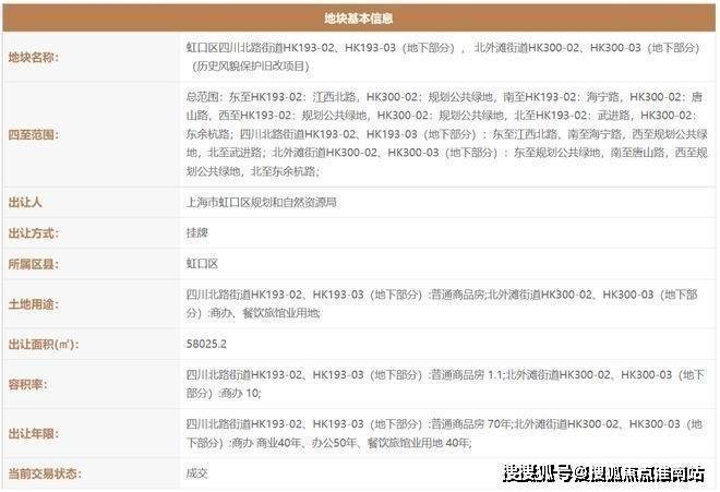 2021年2月,上海虹口城市更新建设发展有限公司(上海地产联合体)以111.35亿拿下了虹口区四川北路街道HK193-02(17街坊弘安里)、HK193-03(地下部分);北外滩街道HK300-02、HK300-03(地下部分)(历史风貌保护旧改项目)