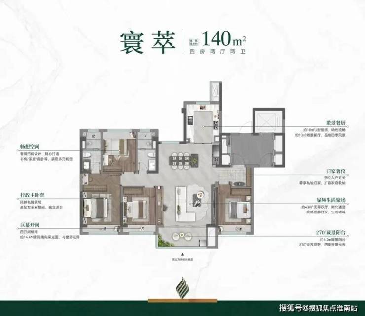 约123㎡全能四房,无论是2人世界还是5口之家,完美适配全生命周期,四开间朝南向,超大采光面!想起观萃的125㎡去年也是一房难求!这次更是升级了环幕视野阳台,关注的朋友们一定要早定下手。