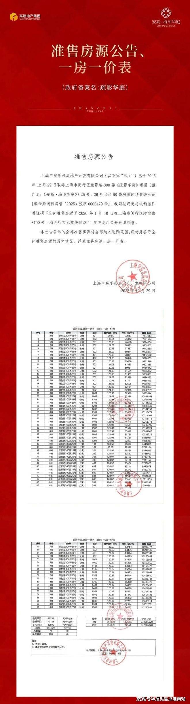 均价84299元/㎡!主城副心再升级!闵行莘庄「安高·海印华庭」建面约119-143㎡户型,附官方预约热线!