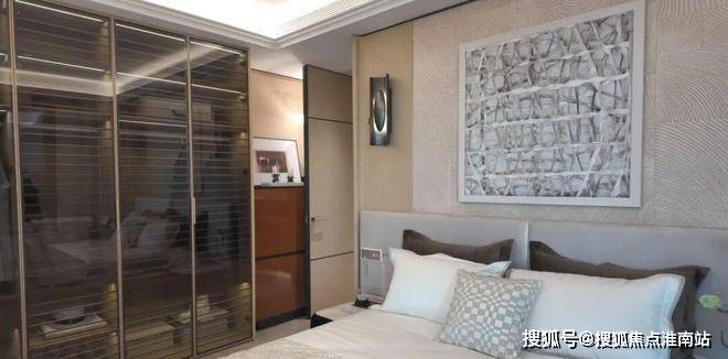 主卧套房面宽约4.8米,采用酒店式配置,配备独立卫浴与超大飘窗,尺度与舒适度俱佳。
