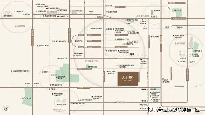 上海闵行古北99售楼处电话☎:400-8818-994【售楼处地址】金虹桥板块位置示意图“虹桥”这两个字,源于虹桥镇,原为上海县的虹桥乡,是个范围很广的区域,里面包括了如今的田林、古北、长宁虹桥等多个片区。虹桥镇形成于明朝时期,大致位置在蒲汇塘两岸的虹梅路附近。