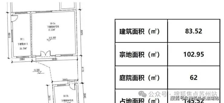 建筑面积83.52㎡,50-1-2a室内净高约4.58m,约3.05m;50-2b室内净高约3.57m,约2.78m。