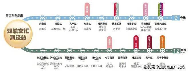 9 号线(已运营)与 12 号线(在建)洞泾站双轨交汇,作为松江新城 “十四五” 核心交通枢纽,双轨交不仅是通勤效率的提升,更是串联全城繁华的 “价值金线”—— 8 站直达徐汇,无缝衔接虹桥枢纽,高效生活圈自此划定。