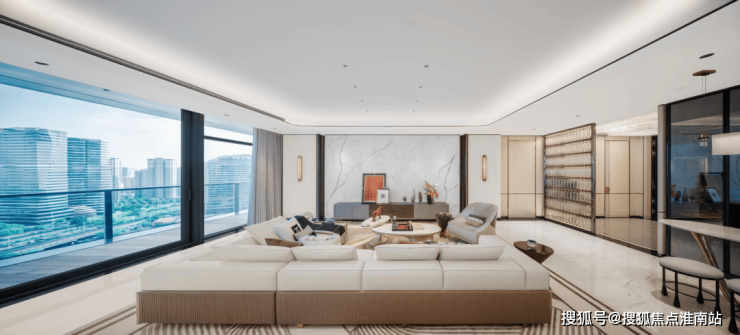 通过两次U型转弯,超大阳台以270°环绕起整个房间,每个卧室都能直通阳台,室内外的空气和风景无缝交融。在客厅和阳台的衔接处,还大手笔地配置了两扇全落地电动提升推拉门,价格相当于一辆特斯拉 Model Y汽车。