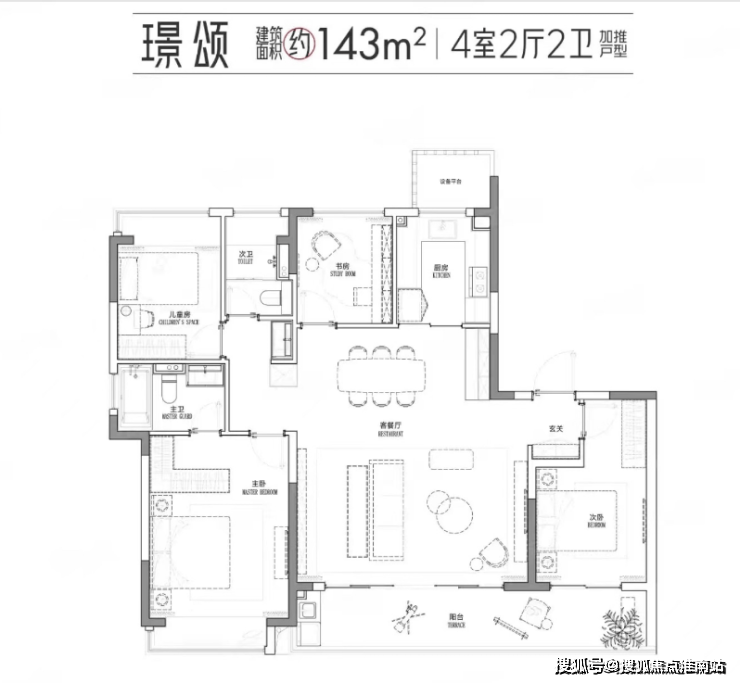 143㎡四房:总价约357-500万元,2梯2户设计,得房率76-83%