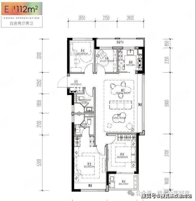 若三代同堂或二胎家庭,112㎡四房边套会是一个更经济实惠的选择。整体布局是在98㎡基础上增加了一个北向次卧,在保证各自有独立居住空间的同时还能保留书房这个“现代刚需”。由内到外都给出了绝对的诚意。