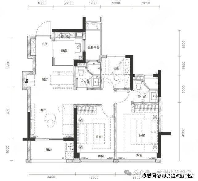 89㎡中间套也能做到三开间朝南的三房两厅格局,首付门槛预计不到30万元。