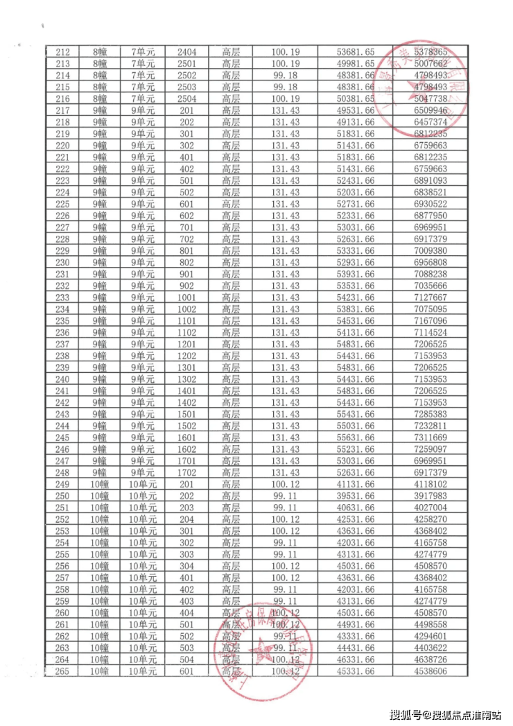 完整一房一价表如下: