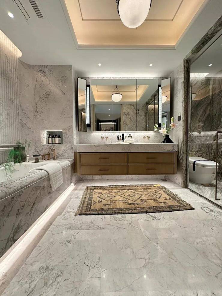 精装标准:国际一线品牌配置,嘉格纳厨电、劳芬/汉斯格雅卫浴、Savant智能家居系统,奢装标准高达1.5万/㎡。