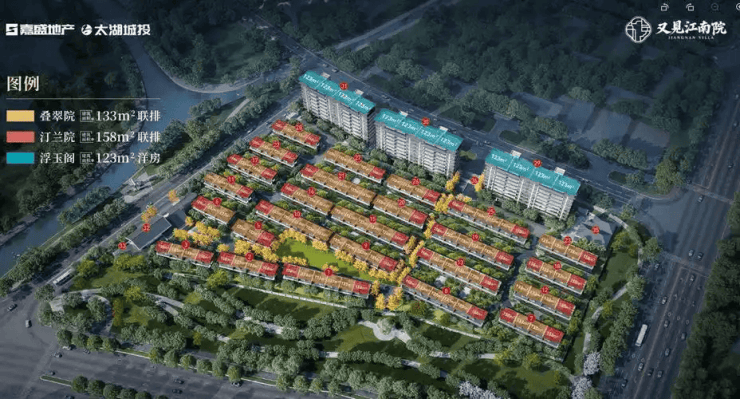 联排院墅 :建面约 133–158㎡ ,得房率高达 245%–248% ,附赠私家庭院与南北双露台,总价 332–566万元