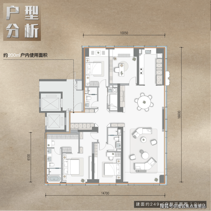 重点来看建面约249㎡的端厅户型——