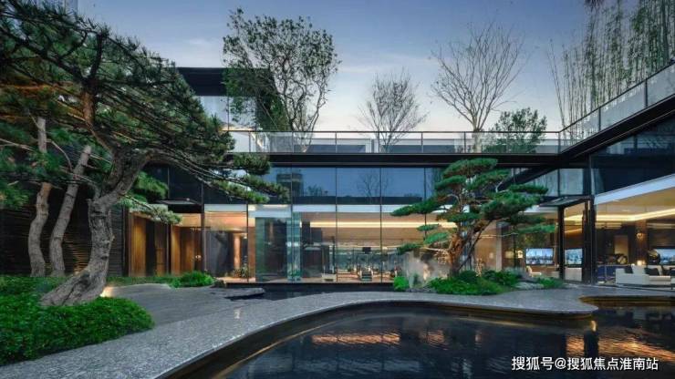 庭院里有6米高的山河叠瀑景墙,营造出银珠飞瀑的动态美,业主观心、观天地,沉醉不知