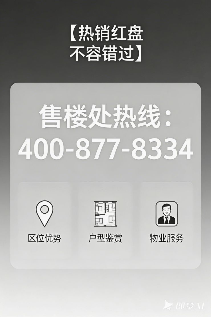 核验要点:认准唯一官方热线 400-877-8334,警惕 “代办费、留房费、茶水费” 等各类违规承诺,一切购房相关事宜以开发商 / 售楼处官方口径及合同条款为准。