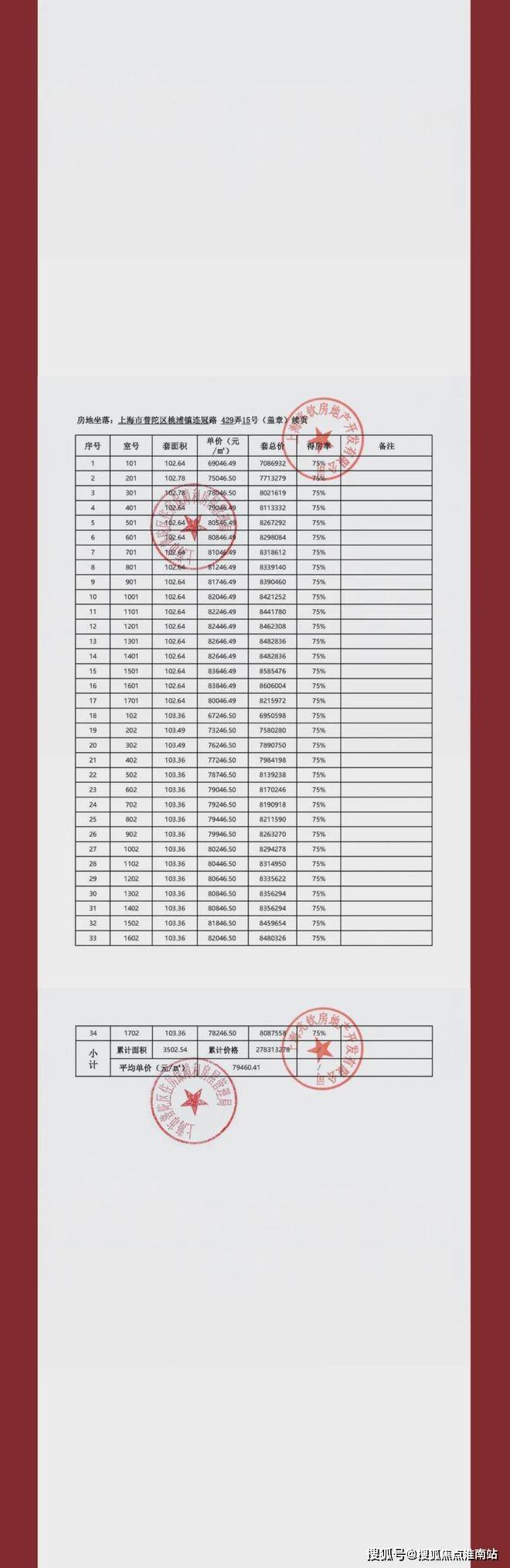 一房一价表: