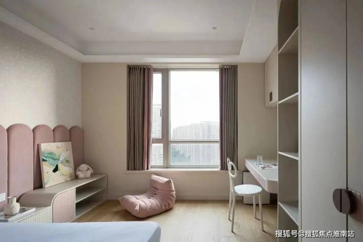 主卧套房设计,贯穿南北,自带卫生间和衣帽间,还有270°转角飘窗,舒适度和私密性双爆表!