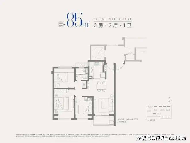 建面约85㎡3房2厅1卫