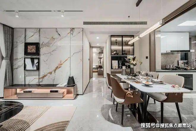 客餐厅的颜值超高,地砖、墙布都在交付标准里,整体风格更为统一,将好看+好用发挥到了极致!