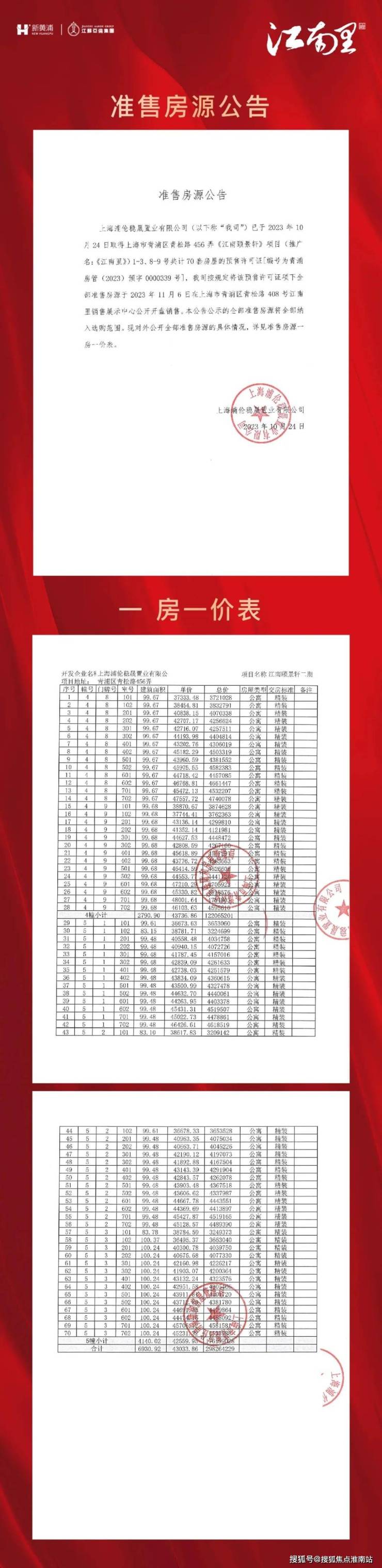 一房一价表: