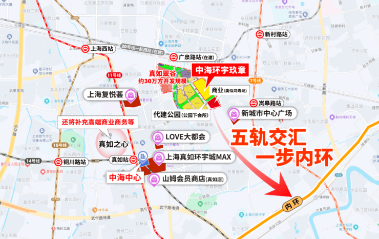 真如芯・内环旁|【中海环宇玖章】落位普陀真如翠谷核心,距内环约1公里,占位真如城市副中心 “伟大的一平方公里” 规划腹地,享约2000亿城市更新红利。