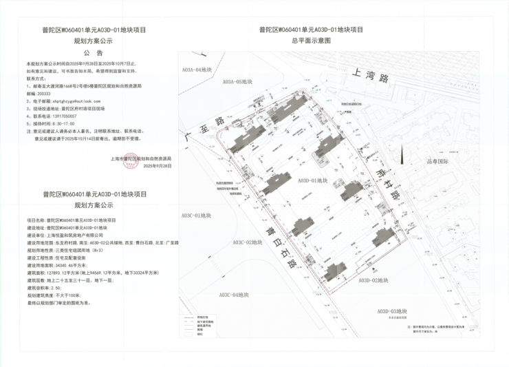 A03D-01地块:出让土地面积34340平方米,土地用途为普通商品房,规划容积率2.5,计容建筑面积85850平方米;