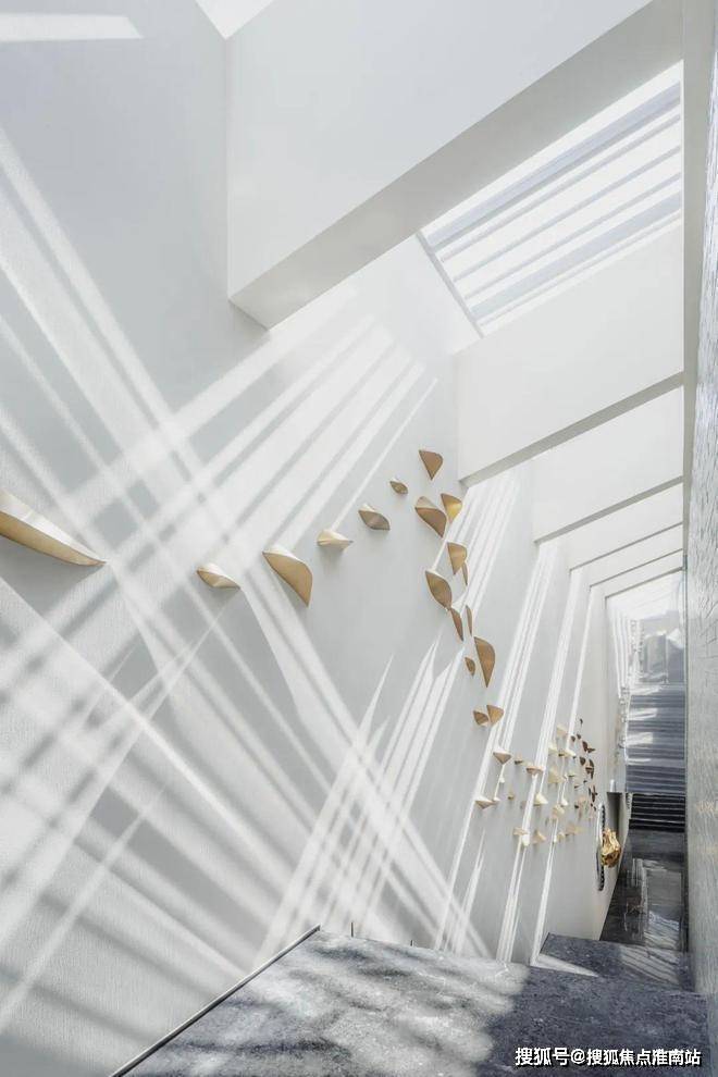 苏州仁恒溪棠售楼处电话☎:400-9659-259(售楼处预约看房热线)设计引入苏式园林的“窗棂”及沧浪亭”复廊”元素并对其进行现代化演绎 —— 当不同时段的自然天光通过建筑天窗进入空间,透过玻璃砖的通透感与单元堆砌的序列感,流动的光影犹如现代式的“窗花”使空间变得更加丰富。