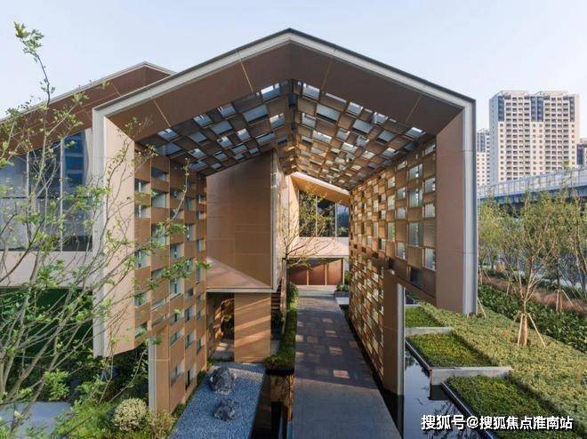 苏州仁恒溪棠售楼处电话☎:400-9659-259(售楼处预约看房热线)入口空间廊架:面向城市街角,透风漏雨、光影斑驳。进入建筑的过程中,感受着散落的光斑和轻拂地微风, 身处人工构架,却能体验到自然林荫中的心境。