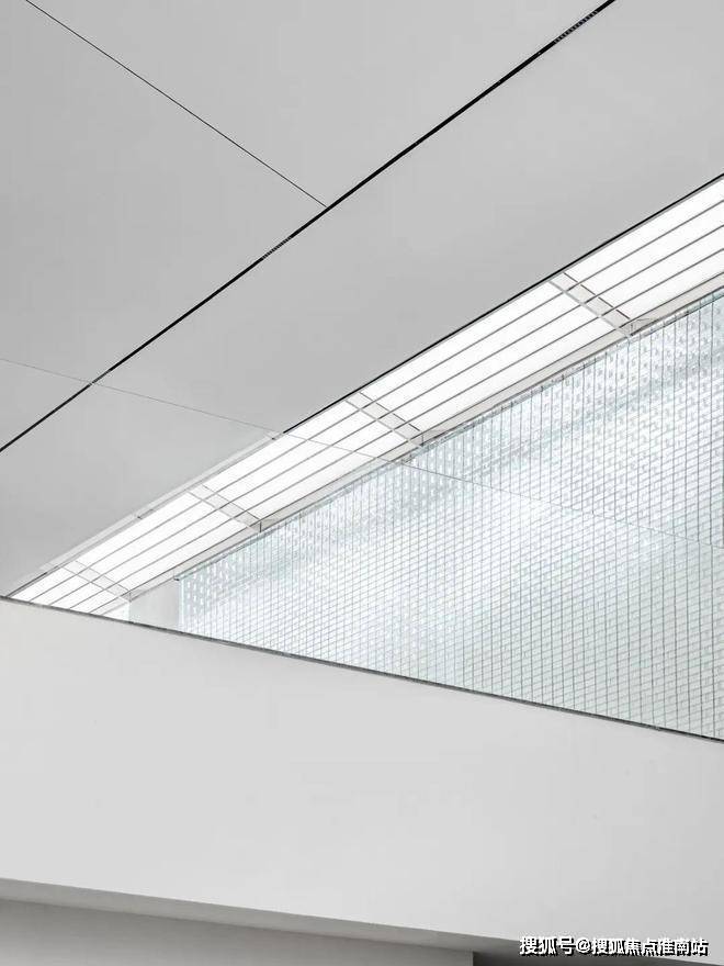 在现代手法的建筑空间中,在主楼梯处运用大面积玻璃砖替代“青砖”,配合建筑天窗引入的日光,在地面形成剔透的水波纹,以在细节处表达古镇传统的工匠精神以及与自然的交融。