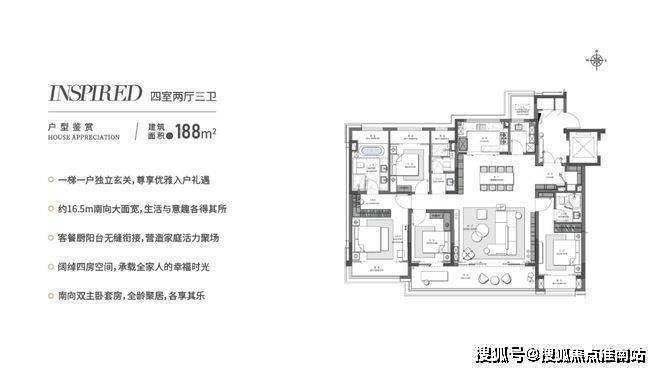 苏州仁恒溪棠售楼处电话☎:400-9659-259(售楼处预约看房热线)“大面宽”已成为衡量住宅品质的重要标准之一,因为其代表着更多的采光、更好的通风、更佳的居住体验。以仁恒溪棠建面约158㎡「明星」户型为例,其南向面宽达到约12.7米,带来3开间朝南阔境格局。