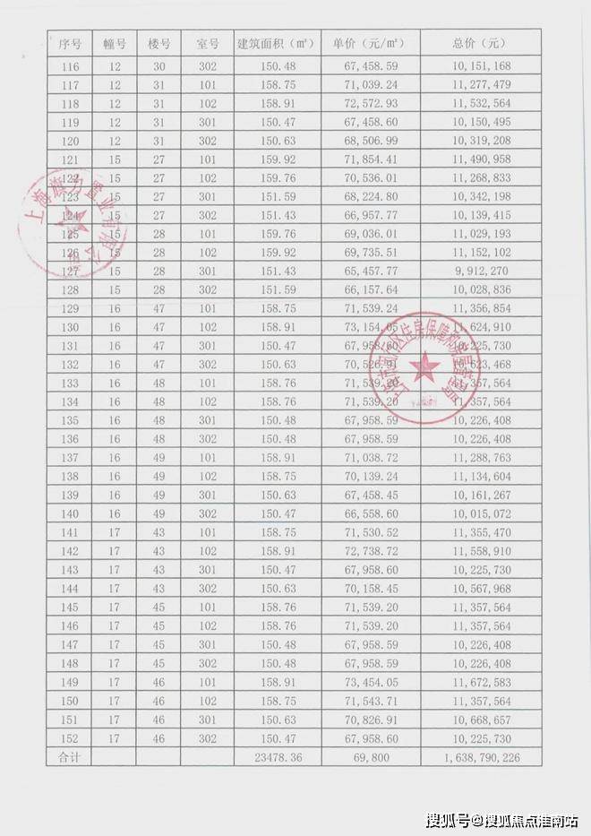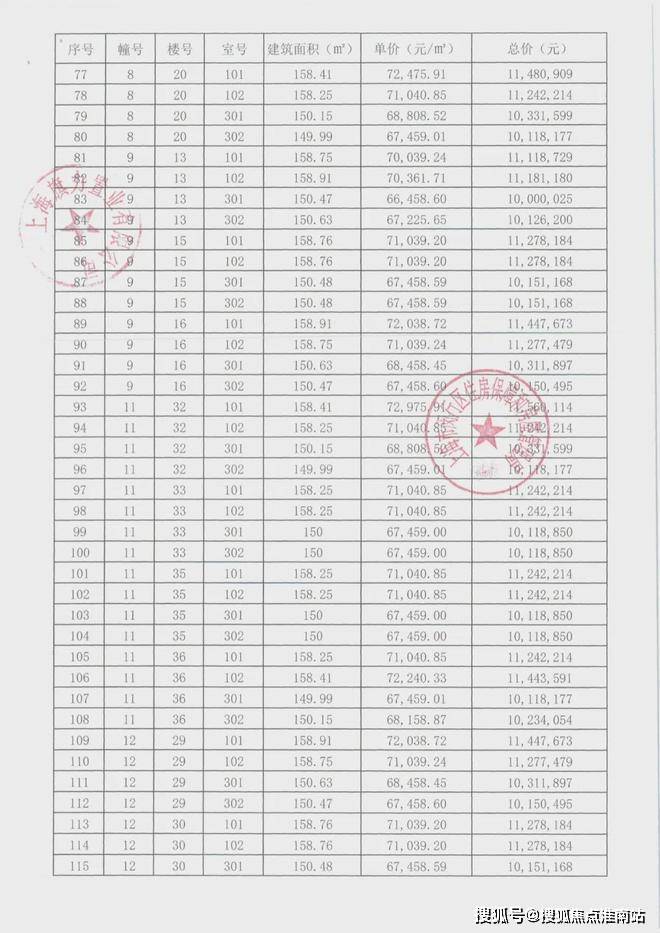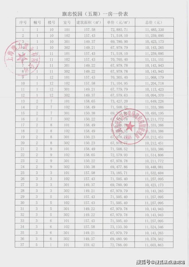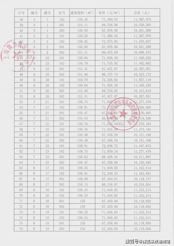 崇明某触发积分项目部分一房一价表