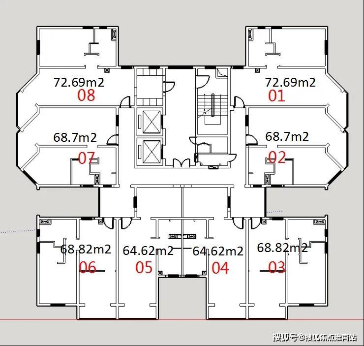 项目共18层,2梯8户,共143套房源,主力产品未建面约61-73㎡,目前剩余房源仅余12套。