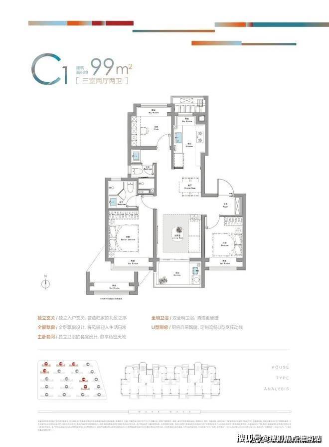 上海松江招商时代潮派售楼处电话☎:400-881-8994(预约看房热线)建面约99㎡三房:该户型是典型的飞机格局,很大程度上提高了使用率无走道浪费+多飘窗设计,让视觉大大向外延伸,“小家也可以住得不小”特别值得一提的是,建面约99㎡还做到了独立玄关+双卫配置,大大提升了业主的私密感