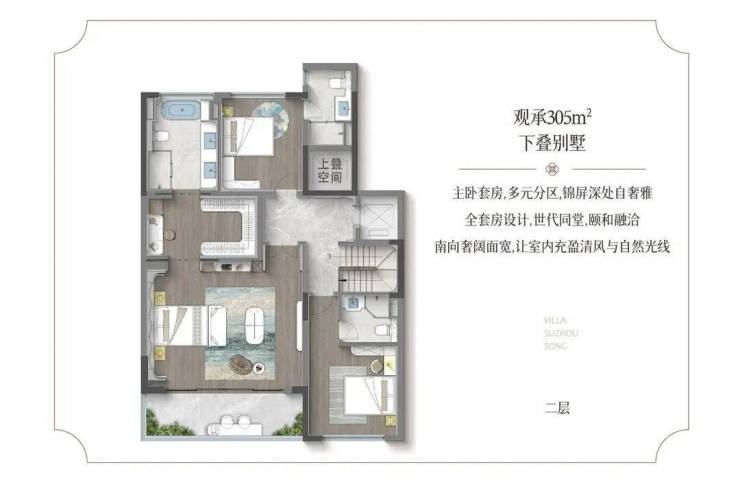主力145-305㎡,四代宅户户空中花园。联排6.9 米地下挑高、独门独院。叠墅私梯入户、花园 / 露台。苏式园林景观,配1500㎡原著会馆。龙湖物业,总价 441 万起,主城稀缺低密豪宅。