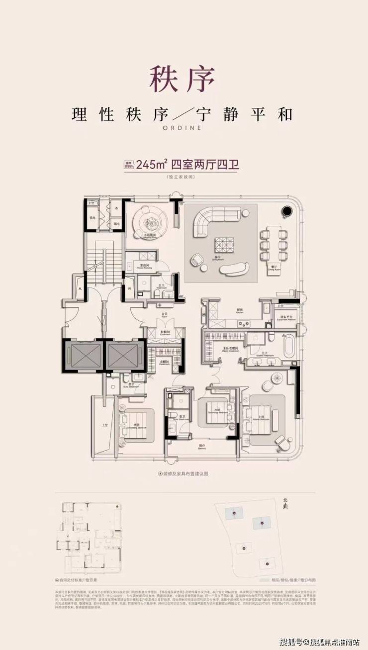 目前,项目准备即将开放的是平层户型的样板间。其中205方户型层高3.15米,245方户型层高3.3米,跃层则达到了约3.6米,整个空间更是气场十足。