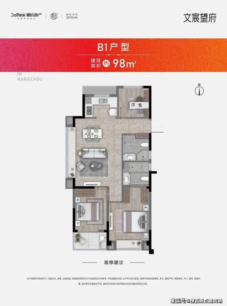 宸望府主要打造了建面约98-118㎡的产品。其中建面约98㎡的户型分为两种!