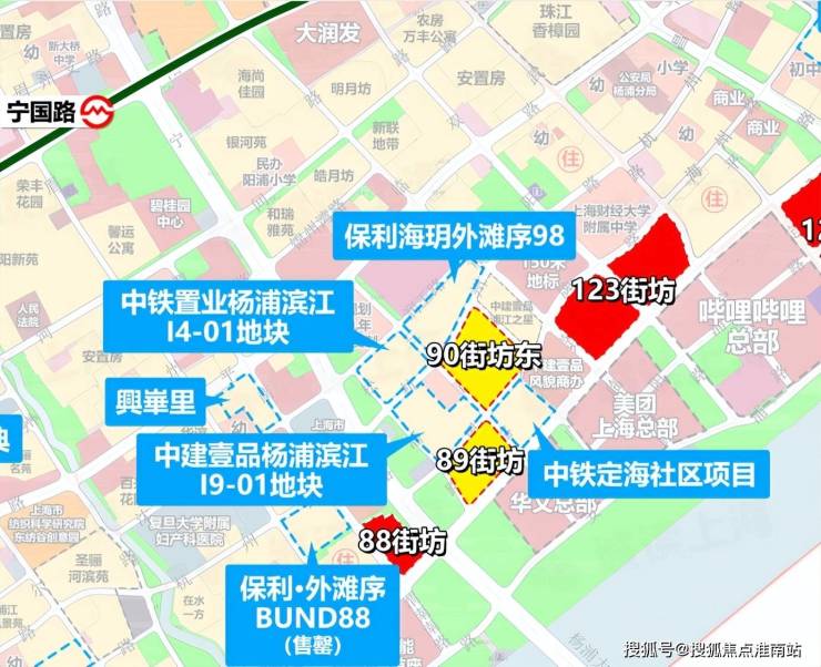 项目地处杨浦滨江大桥东侧“九宫格”内紧邻内环,与在建的华文总部及美团综合体仅一步之遥。