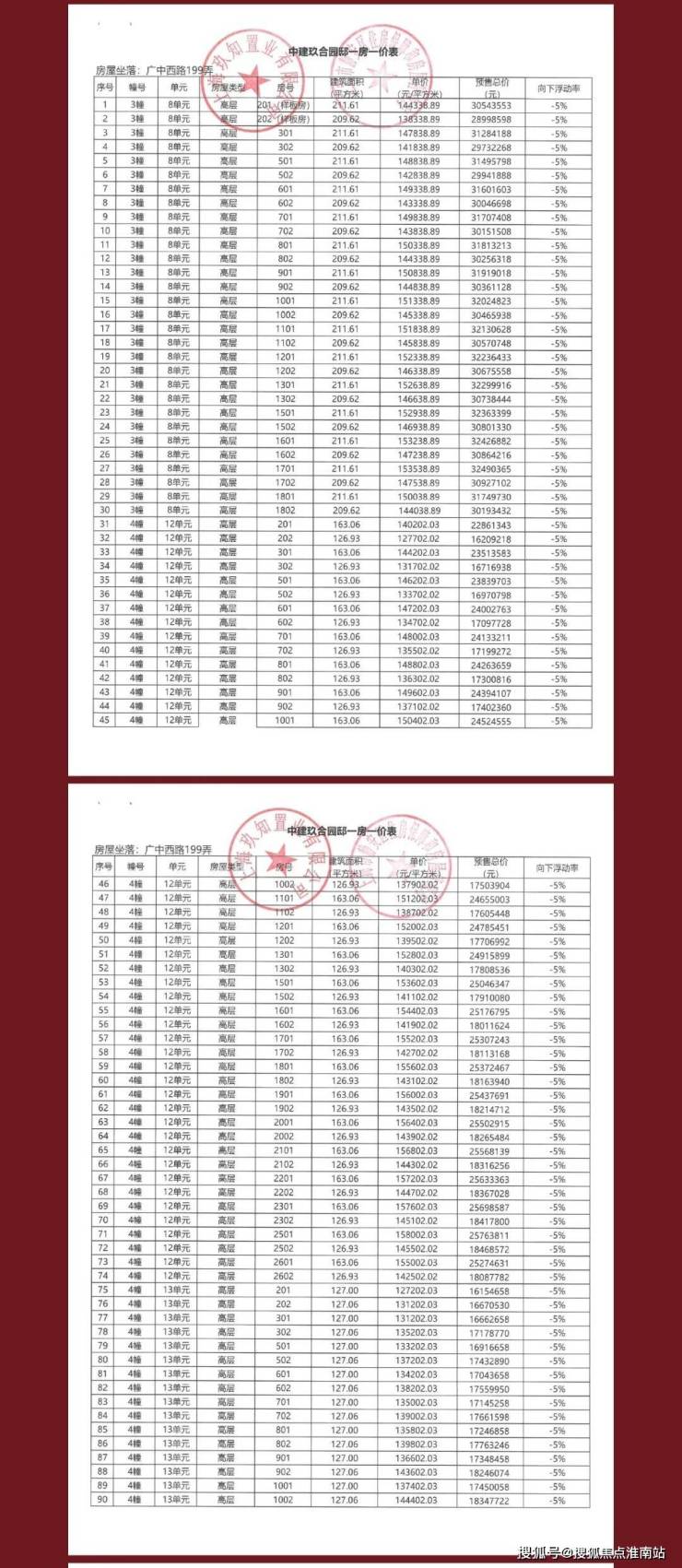 一房一价表如下: