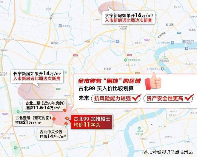 古北99售楼处电话☎:400-8818-994上海古北99售楼处电话☎:400-8818-994【官方认证】详情)大宁地王放风价约16万/㎡、徐汇龙华项目整盘预计18万+/㎡,长宁天山项目放风价约14万/㎡。