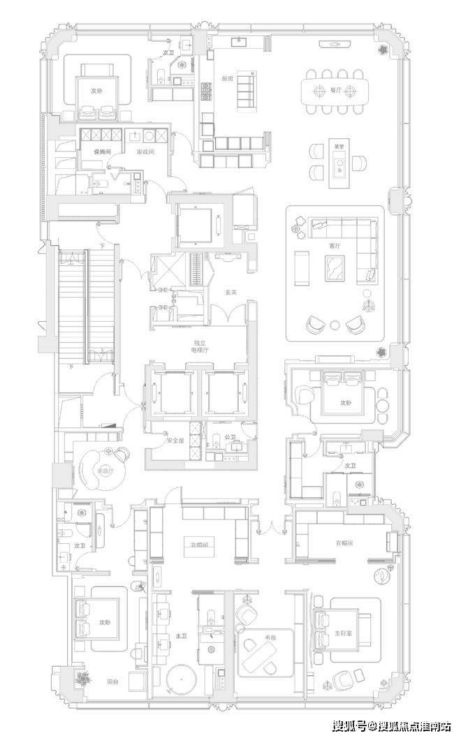 而高福云境凭借150米的高度及衡复风貌区的低密,形成了顶豪中难得的“无界视野”。