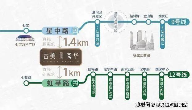 2)9/12号线双地铁,距虹莘路地铁站直线距离1km,距星中路1.4km。