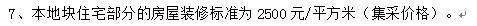 根据项目建设需求: 地块规划住宅下限1565套,地块要求一半全 装修,中小户型比例为60%以上,装修集采标准为2500元/平。
