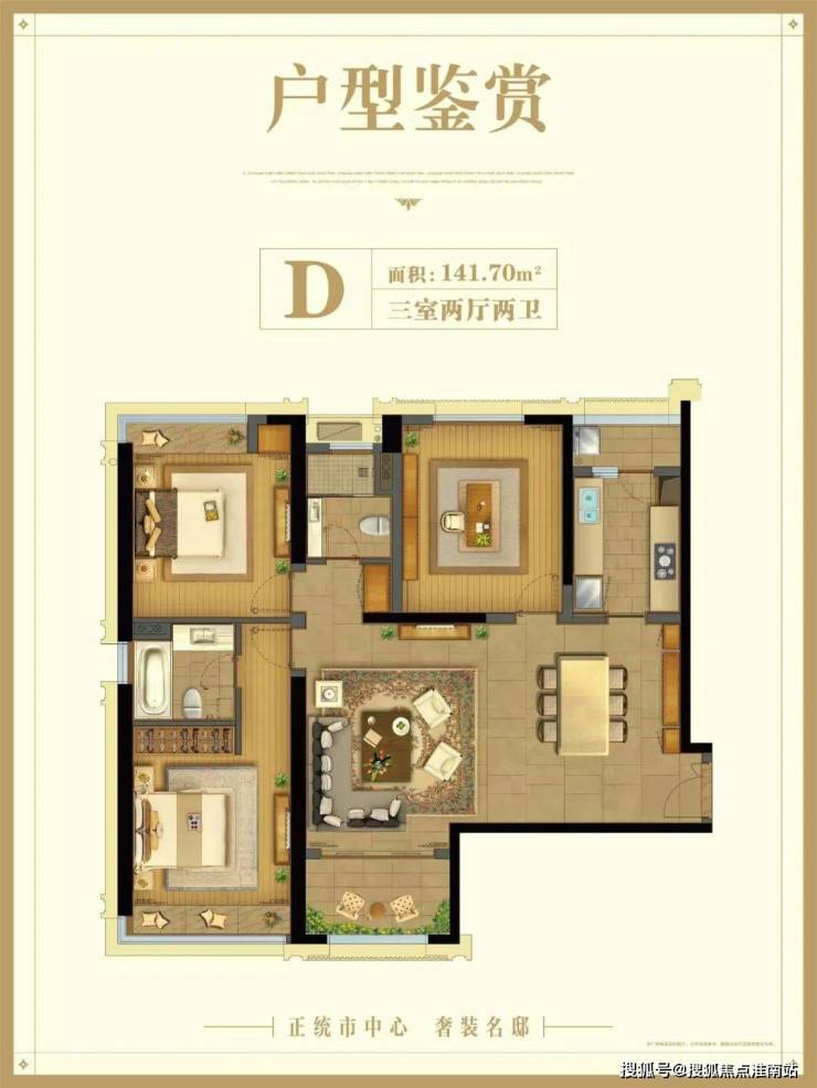 大横厅设计让空间利用率与居住舒适度大幅提升,三个卧室布局合理,保障隐私,全卧飘窗增加采光与空间感。