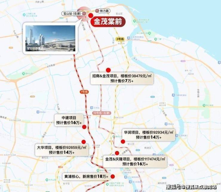 上海宝山金茂棠前售楼处电话☎:400-9659-259(预约看房热线)区位示意图,土拍楼板价来源上海土地市场,新房价格来源网上房地产