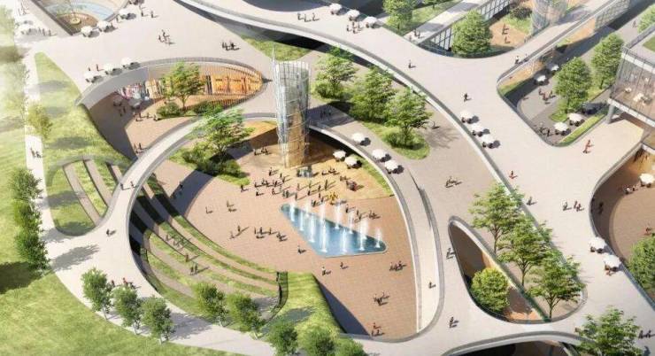 289、鸟瞰图:从空中俯视的整个区域的效果表现图。