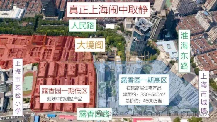 【露香园】项目一、二期合计地上建筑面积 40 万平方米,内含 高层公寓、海派别墅、精品酒店、高端商业、会所、服务式公寓 等业态。