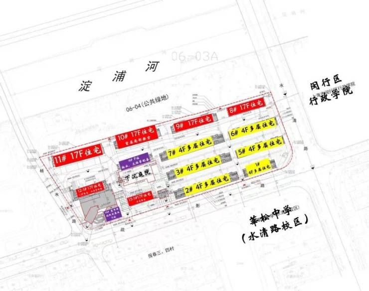 网上有人说这块地是闵行区污水处理厂拆迁而来,其实并不准确。闵行区污水处理厂在淀浦河与北横泾的交汇处,在这个项目以西约200米左右。项目地块这块地从90年代至今曾历经报春菜场、京代会所、小田园饭店、全季酒店、聚鑫阁饭店等。